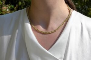 From slim figaros to bold curb links, gold chain necklaces are everywhere — but not in a copycat way. They’re being layered with intention, paired with pendants or worn pure, and worn high or low on the neckline. The freedom lies in mixing textures and proportions: a delicate chain next to a chunkier link, a long one beneath a collar — these combinations feel fresh, unexpected, and deeply personal.